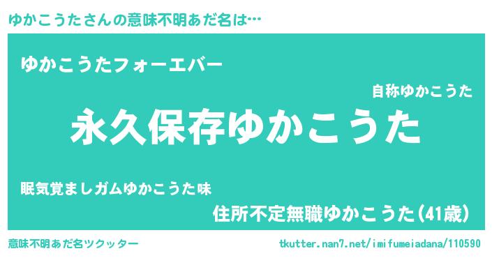| 胡散臭い通販商品みたいなあだ名 | 『絶対に幸福をもたらす健康食品…その名も「ゆかこうた」』 |