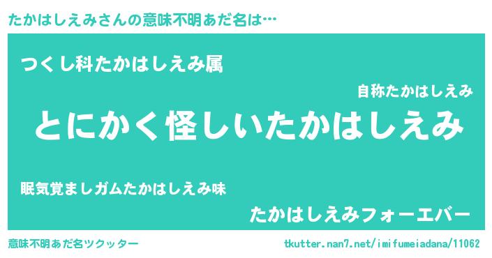 | 女子向けラノベタイトル風あだ名 | 『たかはしえみの卵を拾いまして』 |