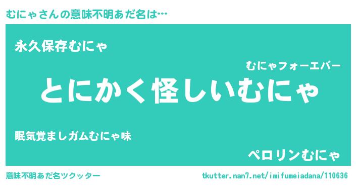 | 男性向けラノベタイトル風あだ名 | 『緋弾のムニャ』『はたらくむにゃさま!』 |