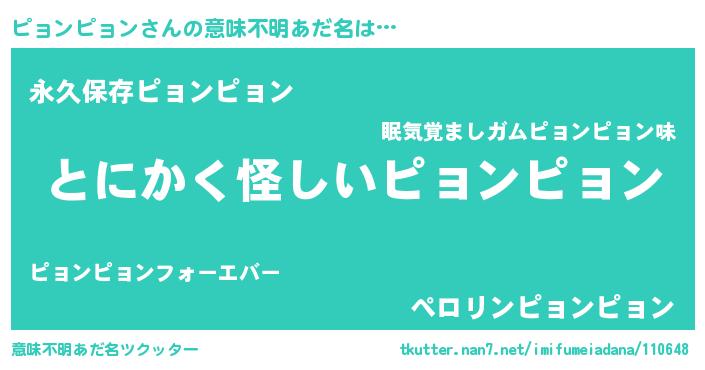 | 女子向けラノベタイトル風あだ名 | 『ピョンピョン様がみてる』 |