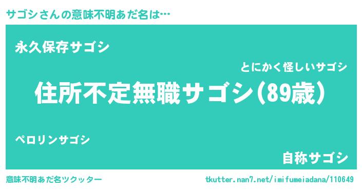 | ヘコむあだ名 | 『サゴシ(遠い目)』『サゴぷりん』 |