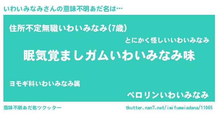 | 欧米人風あだ名 | 『いわいみなみ・ステッグマイヤー』 |