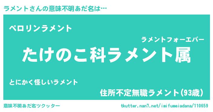 | 男性向けラノベタイトル風あだ名 | 『転生したらラメントだった件』 |