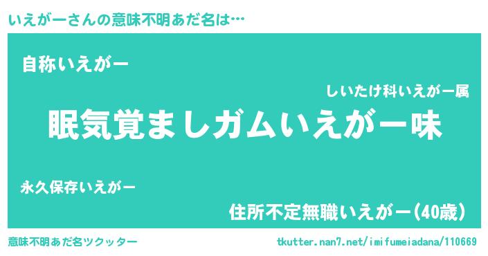 | ヒーロー風カッコイイあだ名 | 『正義の使者いえがー』『仮面イエダー』 |