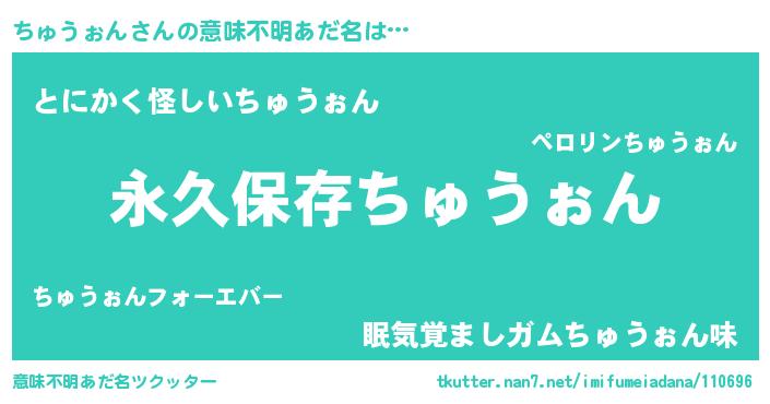 | ヒーロー風カッコイイあだ名 | 『ネオチュウォン』『暗黒騎士チュ』 |
