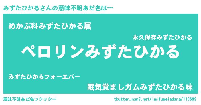 | ヘコむあだ名 | 『みずにー』『みずたひかる(小並感)』 |