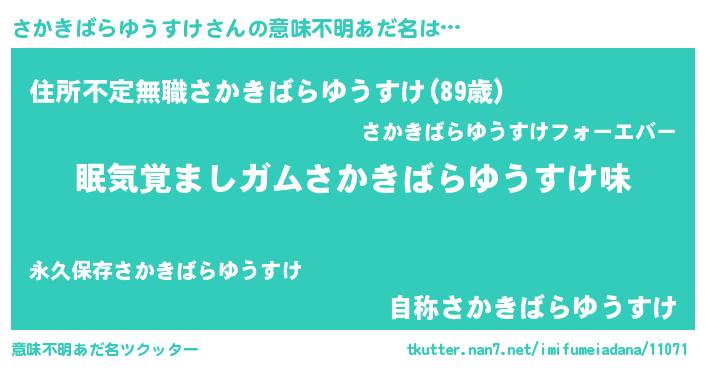 | 胡散臭い通販商品みたいなあだ名 | 『100人中100人が認めたイリジウム磁石…その名も「さかきばらゆうすけ」』 |