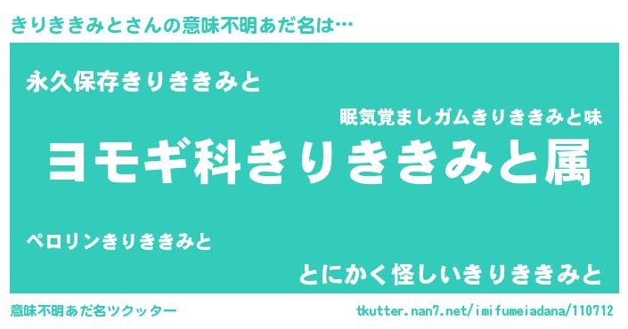 | 胡散臭い通販商品みたいなあだ名 | 『前代未聞の水素水…その名も「きりききみと」』 |