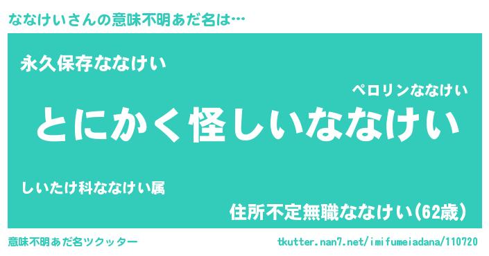 | 胡散臭い通販商品みたいなあだ名 | 『全米が絶賛したサプリメント…その名も「ななけい」』 |