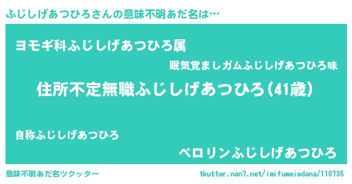 | 料理風あだ名 | 『ふじしげあつひろのカルパッチョ風』 |