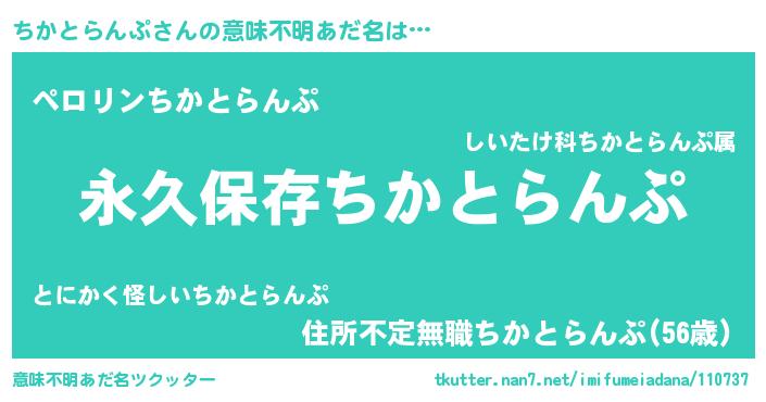 | 男性向けラノベタイトル風あだ名 | 『ちかとらんぷという概念が存在しない退屈な世界 』 |
