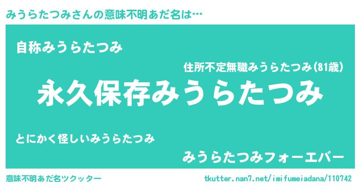 | 男性向けラノベタイトル風あだ名 | 『みうらたつみという概念が存在しない退屈な世界 』 |