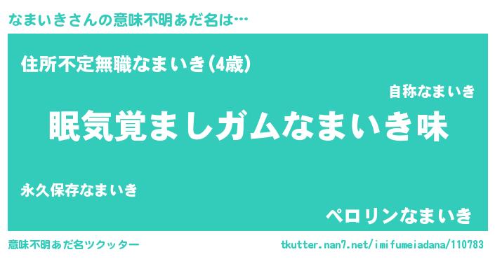 | ヘコむあだ名 | 『なまふぇ~』『なまいき(小並感)』 |