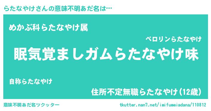 | ヘコむあだ名 | 『らたもー』『らたなやけ(爆)』 |