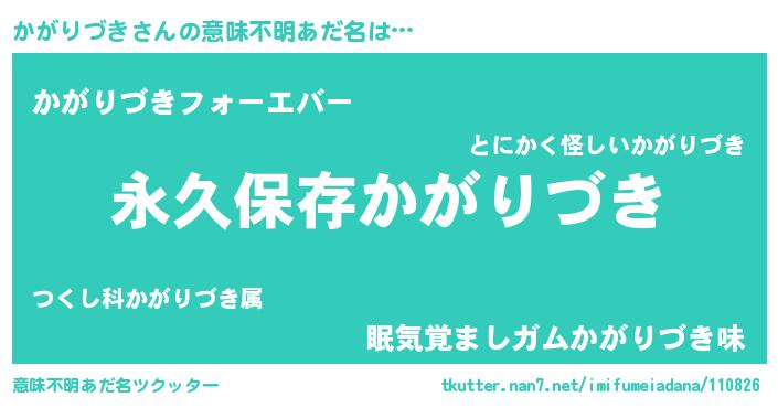 | ヘコむあだ名 | 『かがりづき(小並感)』『なまこ酢』 |