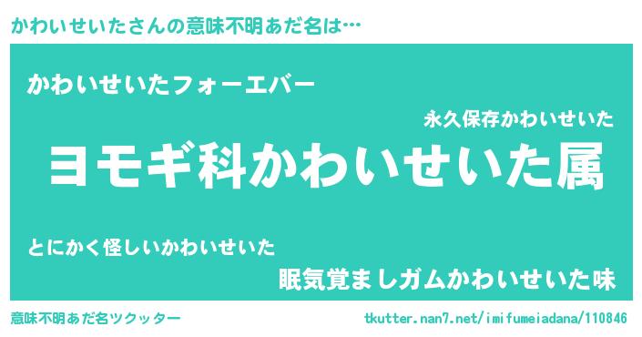 | 男性向けラノベタイトル風あだ名 | 『かわいせいた~年齢イコール彼女いない歴の魔法使い~』 |