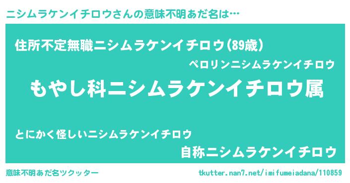 | 欧米人風あだ名 | 『ニシムラケンイチロウ・ステッグマイヤー』 |