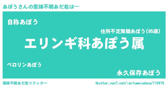 | ヘコむあだ名 | 『あぽう(笑)』『あぽにー』 |