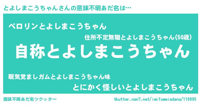 | 胡散臭い通販商品みたいなあだ名 | 『テレビで話題の高麗人参…その名も「とよしまこうちゃん」』 |