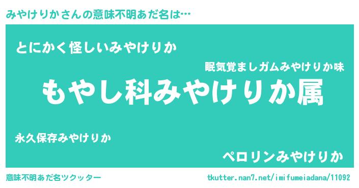 | 胡散臭い通販商品みたいなあだ名 | 『伝統あるサプリメント…その名も「みやけりか」』 |