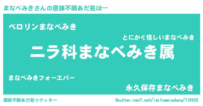 | 胡散臭い通販商品みたいなあだ名 | 『億万長者になれる水晶球…その名も「まなべみき」』 |