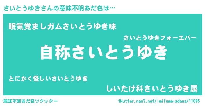 | 男性向けラノベタイトル風あだ名 | 『うちのさいとうゆきが世界を掌握している!』 |