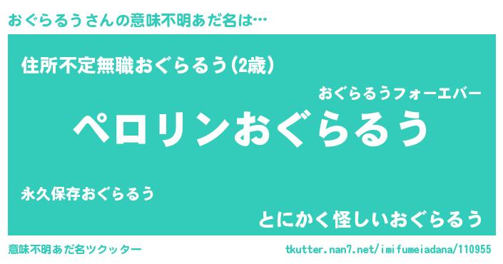 | 胡散臭い通販商品みたいなあだ名 | 『モテモテ間違いなし霊験あらたかなお札…その名も「おぐらるう」』 |