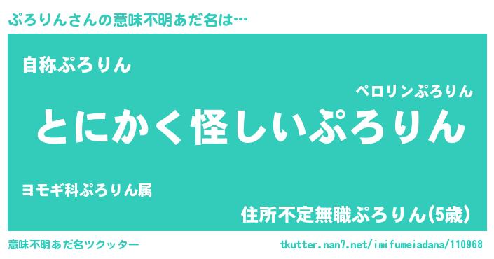 | 胡散臭い通販商品みたいなあだ名 | 『信頼と実績のサプリメント…その名も「ぷろりん」』 |
