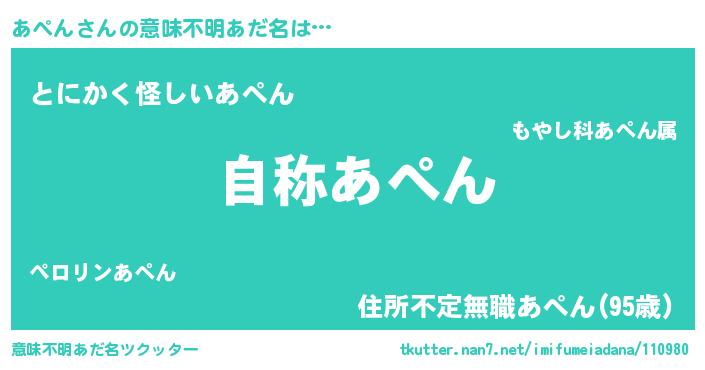 | ピコ太郎風あだ名 | 『アペ次郎』『アコ十郎』『アア太郎』 |