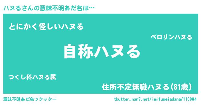 | 胡散臭い通販商品みたいなあだ名 | 『芸能人もオススメする高麗人参…その名も「ハヌる」』 |