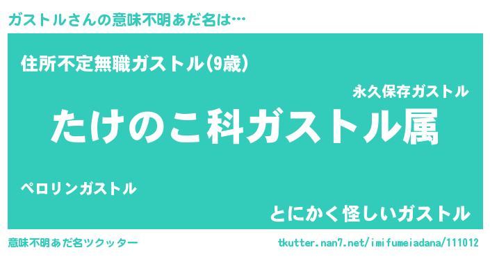 | ヘコむあだ名 | 『ガスっちょ』『ガストル(笑)』 |