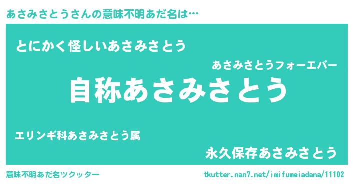| ヒーロー風カッコイイあだ名 | 『最強戦士アサミサトウ』『銀牙騎士アサ』 |