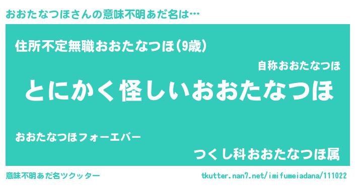 | 女子向けラノベタイトル風あだ名 | 『おおたなつほの卵を拾いまして』 |