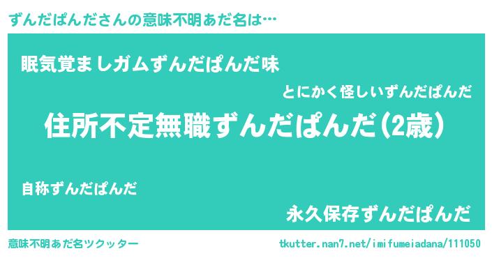 | ヘコむあだ名 | 『ずんだぱんだ(小並感)』『ずんっ子』 |