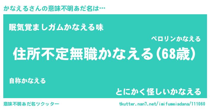 | 男性向けラノベタイトル風あだ名 | 『はたらくかなえるさま!』 |