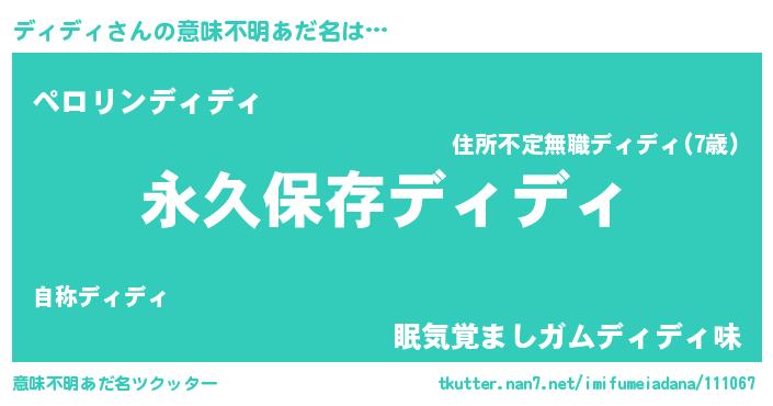 | 男性向けラノベタイトル風あだ名 | 『ディディという概念が存在しない退屈な世界 』 |