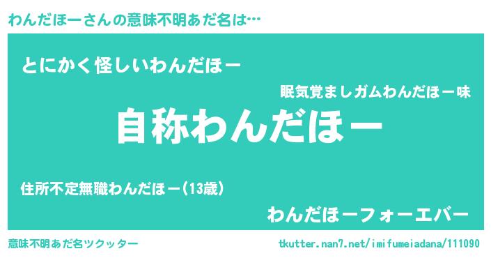 | 男性向けラノベタイトル風あだ名 | 『Re:わんだほーから始める異世界生活』 |