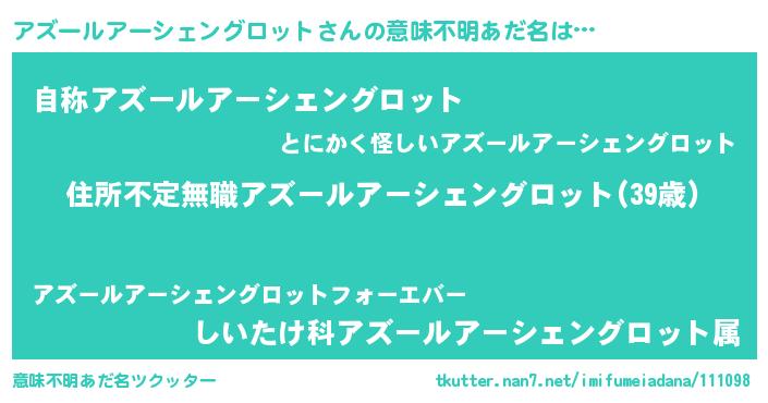 | 欧米人風あだ名 | 『ダレノガレアズールアーシェングロット』 |