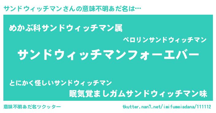 | ファンタジー風あだ名 | 『エターナルサンドウィッチマンー』 |