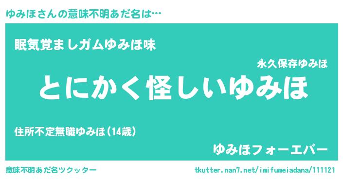 | 女子向けラノベタイトル風あだ名 | 『ゆみほの卵を拾いまして』 |