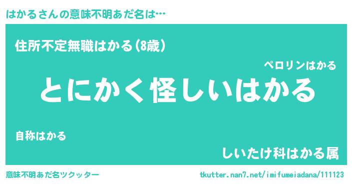 | 自動車の名前っぽいあだ名 | 『ハルトカパン』『ポハシェ』 |