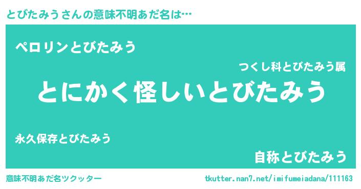 | 欧米人風あだ名 | 『ウサインとびたみう』 |