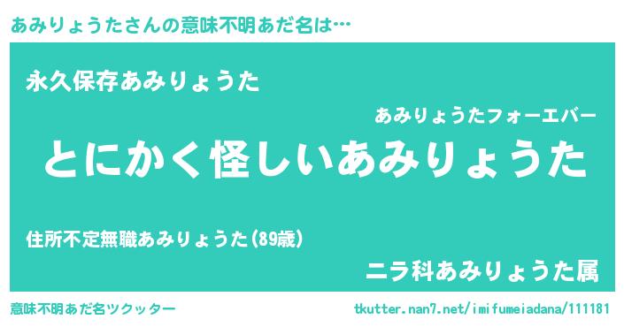 | 胡散臭い通販商品みたいなあだ名 | 『全米が絶賛したサプリメント…その名も「あみりょうた」』 |