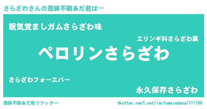 | 欧米人風あだ名 | 『マイケルさらざわ』『ダニエルさらざわ』 |