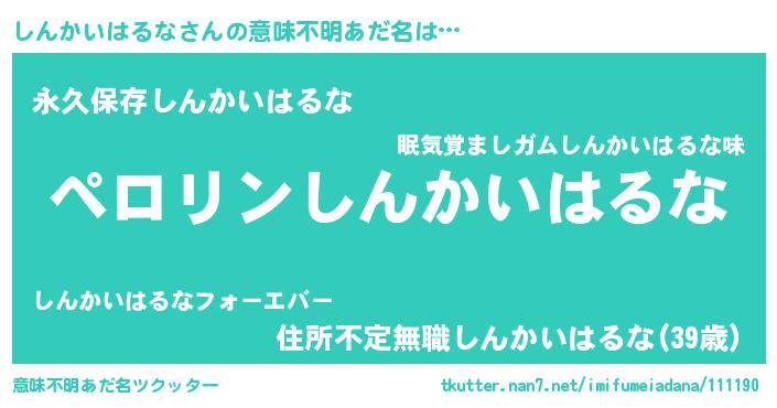 | 胡散臭い通販商品みたいなあだ名 | 『億万長者になれる水晶球…その名も「しんかいはるな」』 |