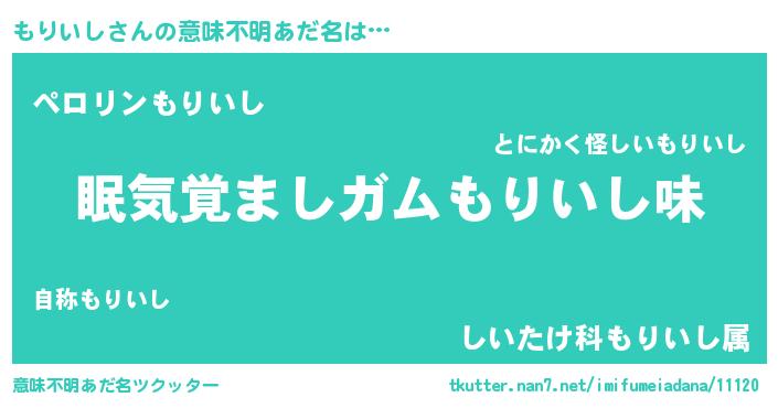| 男性向けラノベタイトル風あだ名 | 『ノーゲーム・ノーモリイシ』 |