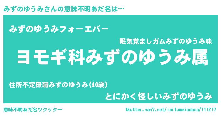 | 欧米人風あだ名 | 『トリンドルみずのゆうみ』 |