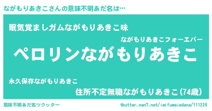 | 伝説のあだ名 | 『不死鳥のスナイパーながもりあきこ』 |