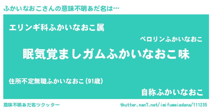 | 女子向けラノベタイトル風あだ名 | 『ふかいなおこ恋絵巻』 |