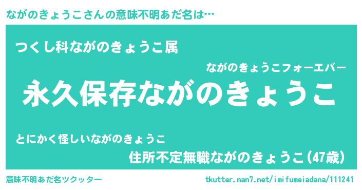 | ヒーロー風カッコイイあだ名 | 『ネオナガノキョウコ』『仮面ナガダー』 |